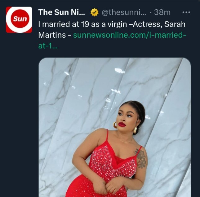 Famous Nollywood actress and media personality, Sarah Martins, has revealed that she got married as a virgin. VIDEO
