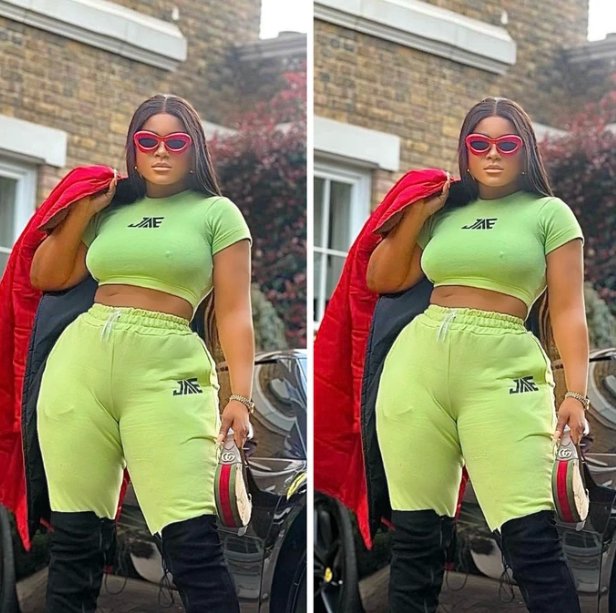 This time, she showed she has a good taste for fashion by dressing up nicely in a two-piece outfit that looked stunning on her. She appeared with a nice-looking hairdo that enhanced her beauty. She applied neatly done makeup to her face that matched the color of her skin. She put on a sunshade and black boots as she took the pictures beside a luxurious car.
